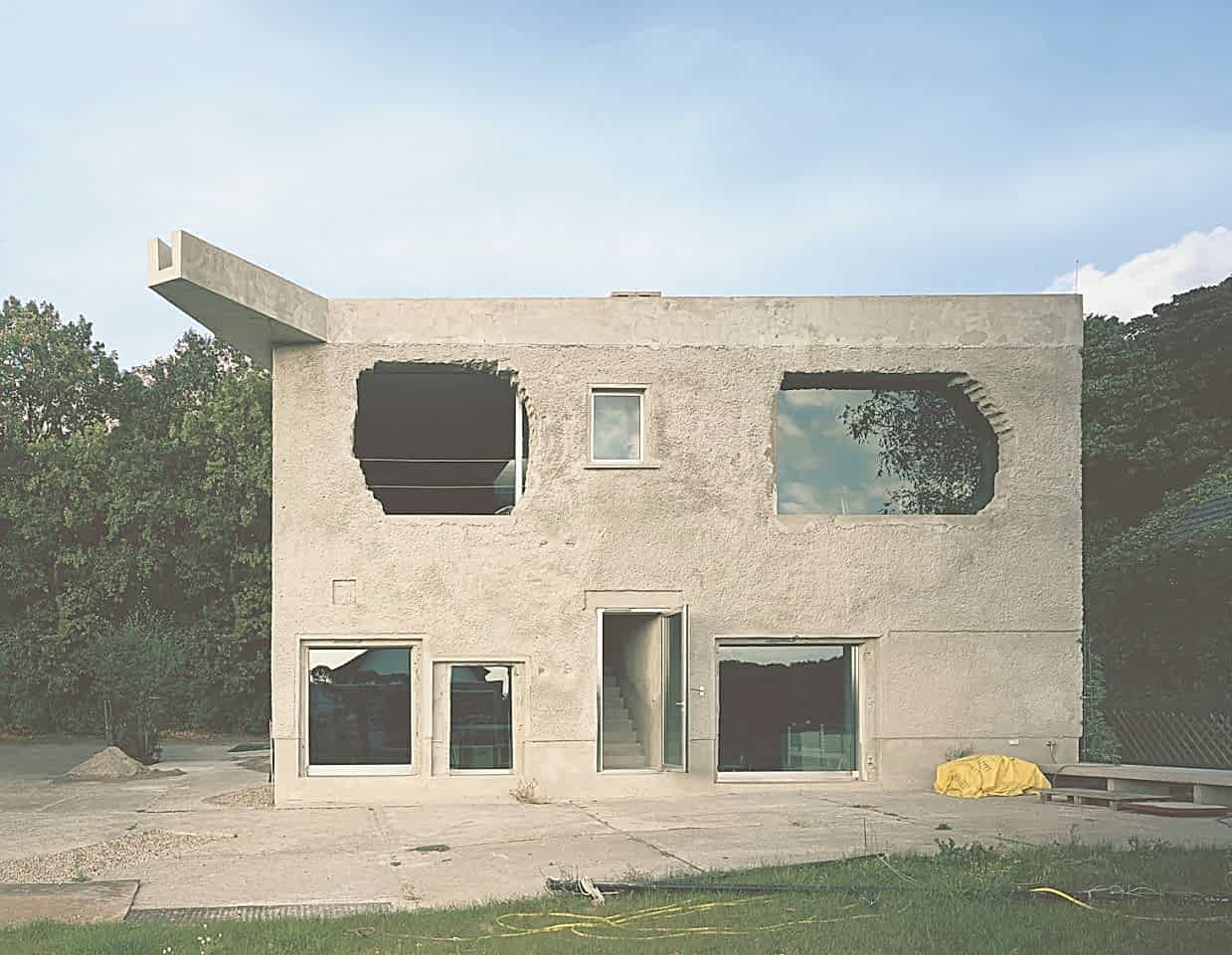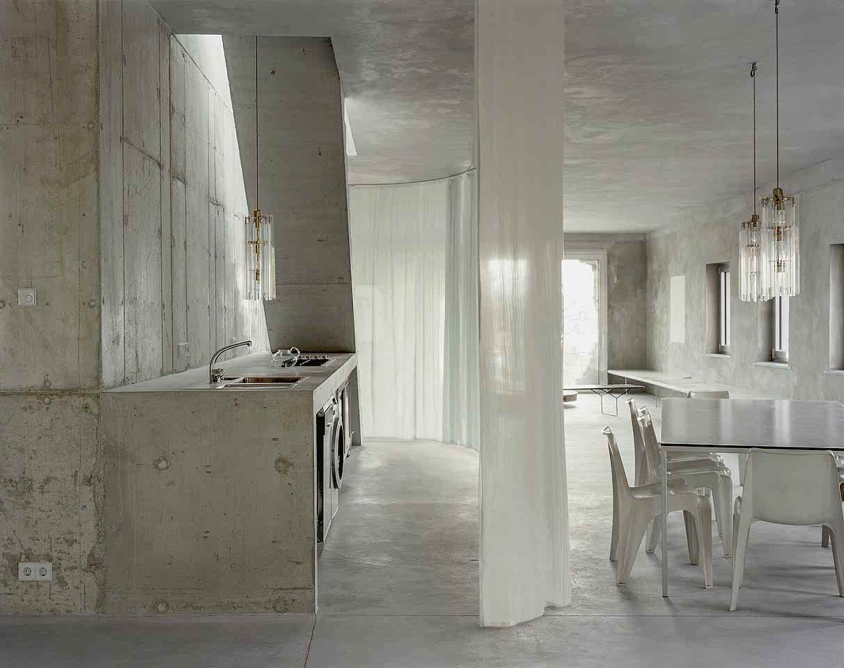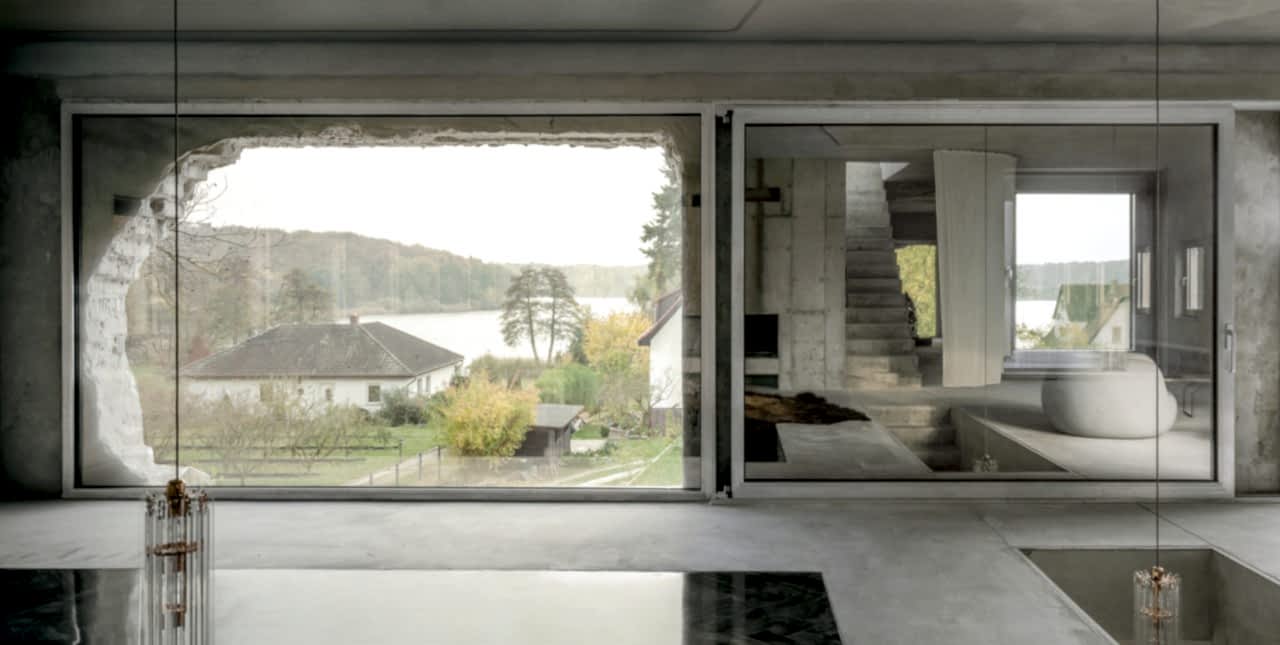 Antivilla by Brandlhuber+ Emde, Burlon is situated beside the Krampnitzsee, in Potsdam 45min south-west of Berlin. The building—a renovation of the Ernst Lück lingerie factory in the former GDR—is not a mere physical upgrade of the outer shell. Instead, it questions the mandatory standards in current building regulations by proposing a new understanding of architecture and the environment and proposes a new form of a villa: the Antivilla.