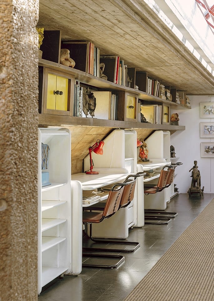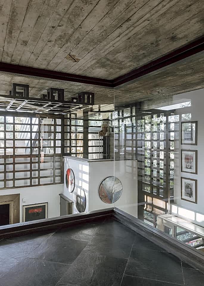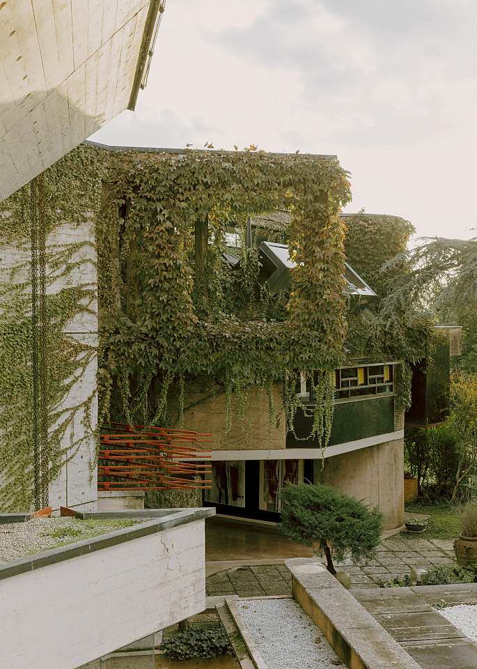 Outside, the villa’s worn stone façade is softened by overgrown greenery and wild Mediterranean plantings. Courtyards and garden walls form intimate architectural enclosures, offering layered outdoor settings with depth and texture. The architectural restraint of Coleottero leaves room for visual interpretation—its timeless bones provide the perfect canvas for emotional or atmospheric narratives.