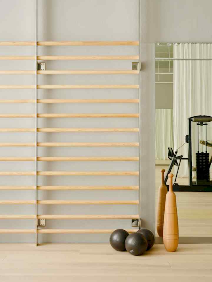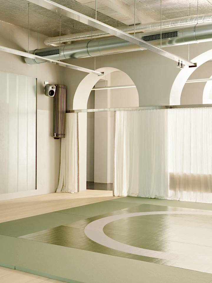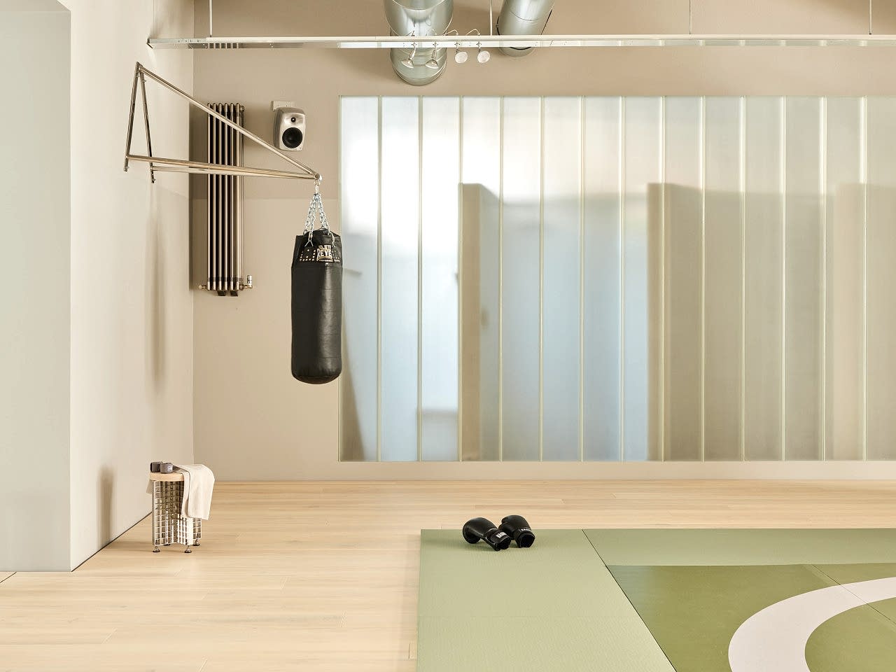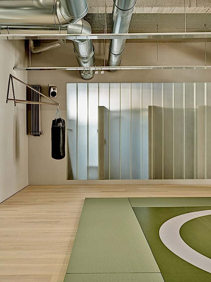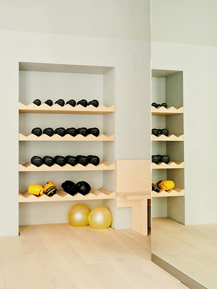 Our Sports Club is clean and minimal. It is designed to align with the bodyโs natural rhythms. An open atrium, divided into two spaces. Across all spaces, stimuli are reduced to create a calm and focused environment. Natural materials such as wood and stone are intended to absorb, reflect, or diffuse light as it changes throughout the day. An almost imperceptible scent is present to further quiet the senses โ creating a space where body, mind, and movement surface to the foreground of the experience.