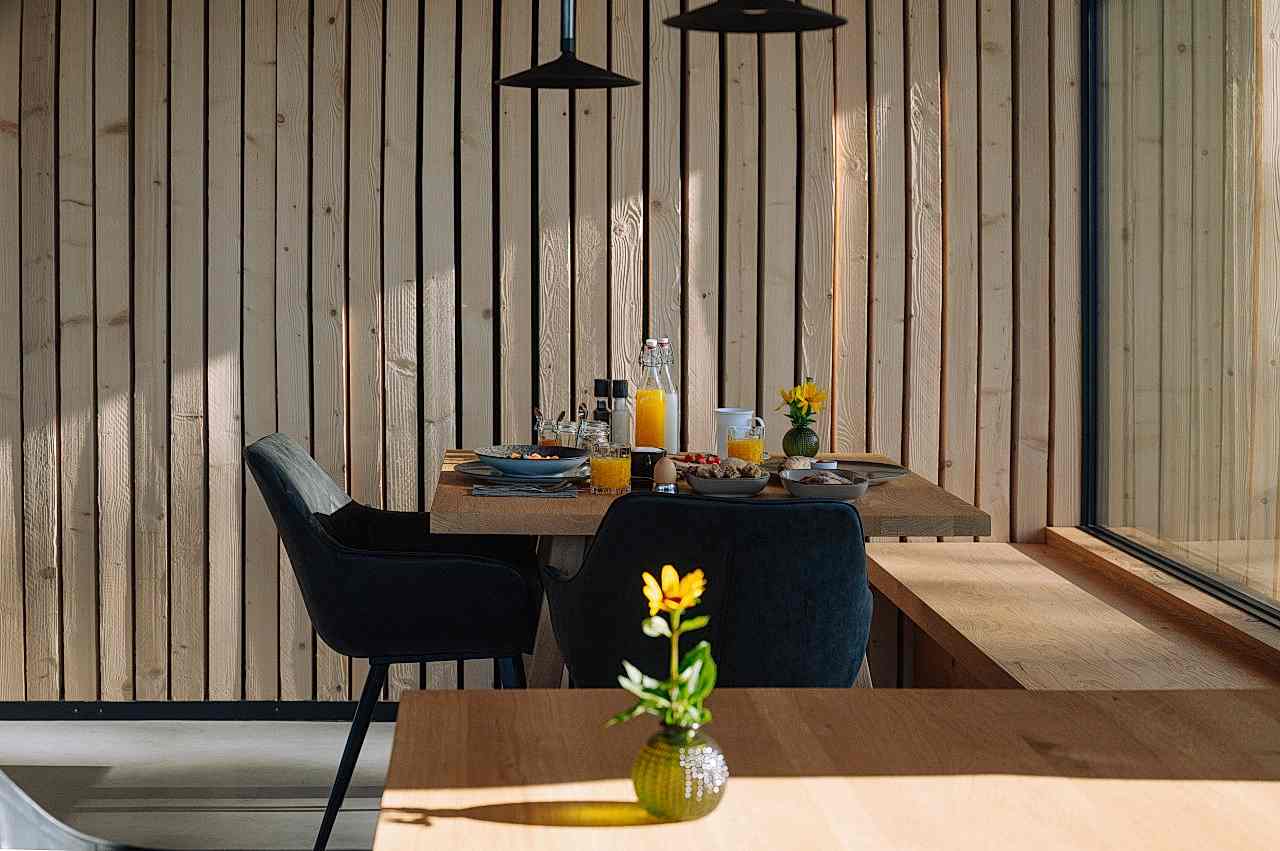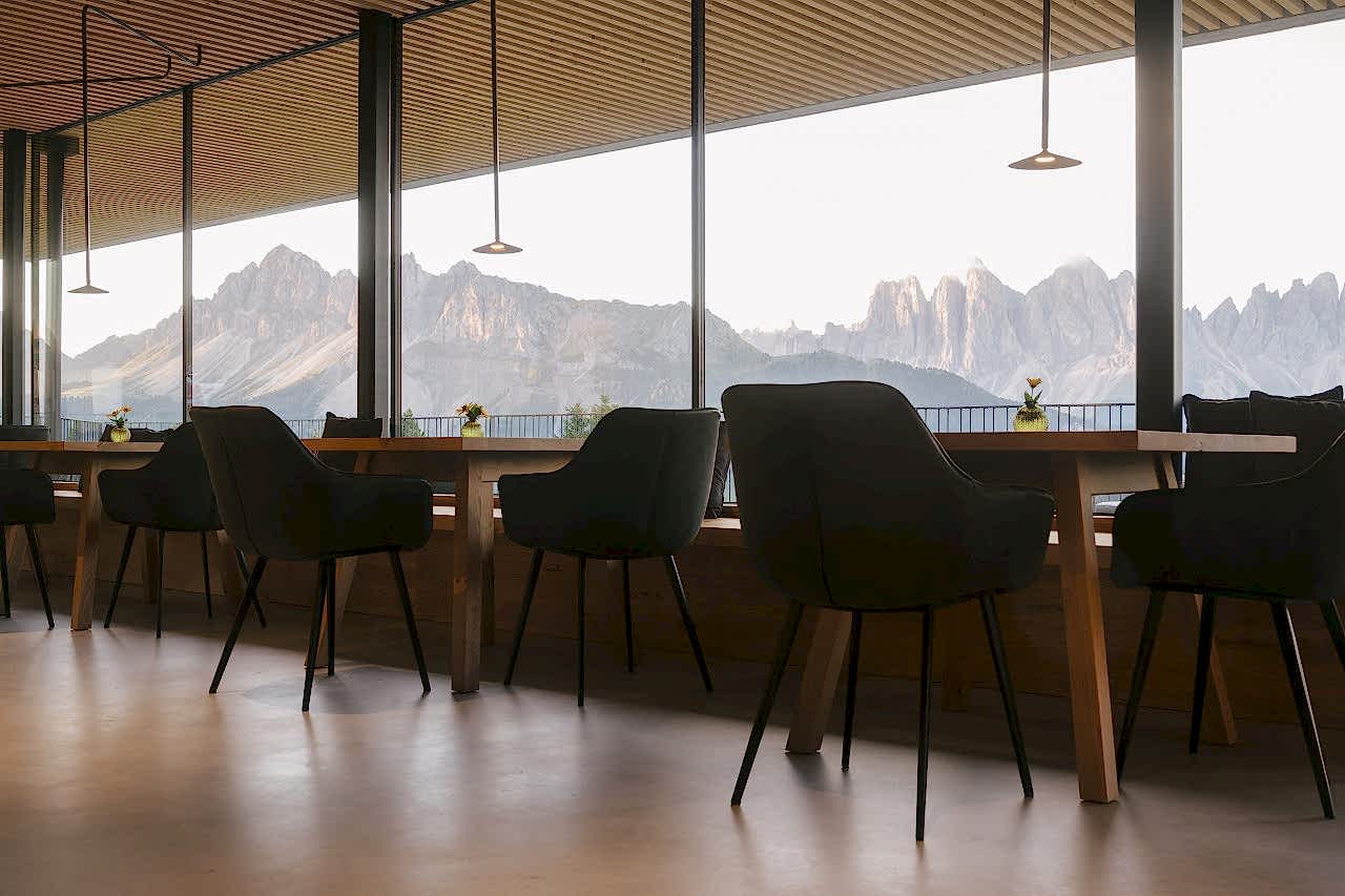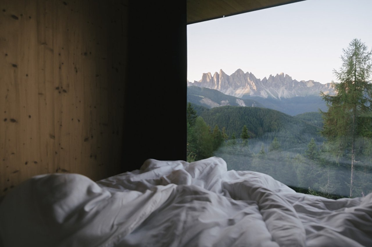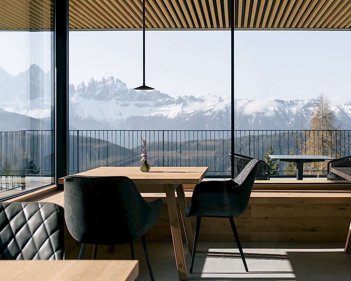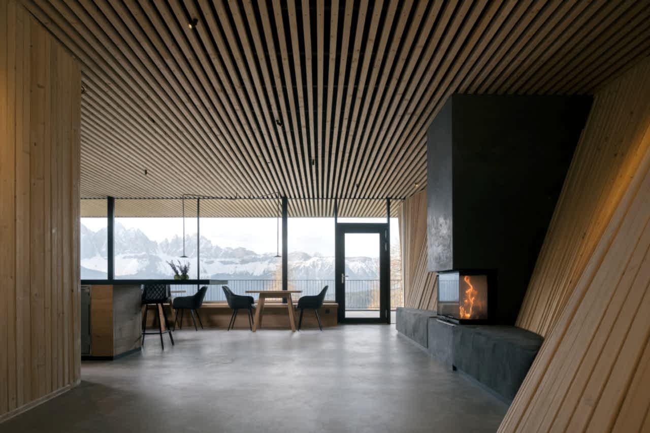 The combination of tradition and modernity is evident in every nook and cranny at this architectural dream. Although the wooden façade, made of brushed spruce, has elements of a traditional mountain chalet, as is fitting for the South Tyrolean mountains, the flat cement roof and sculptural form undoubtedly make it a minimalist refuge.
