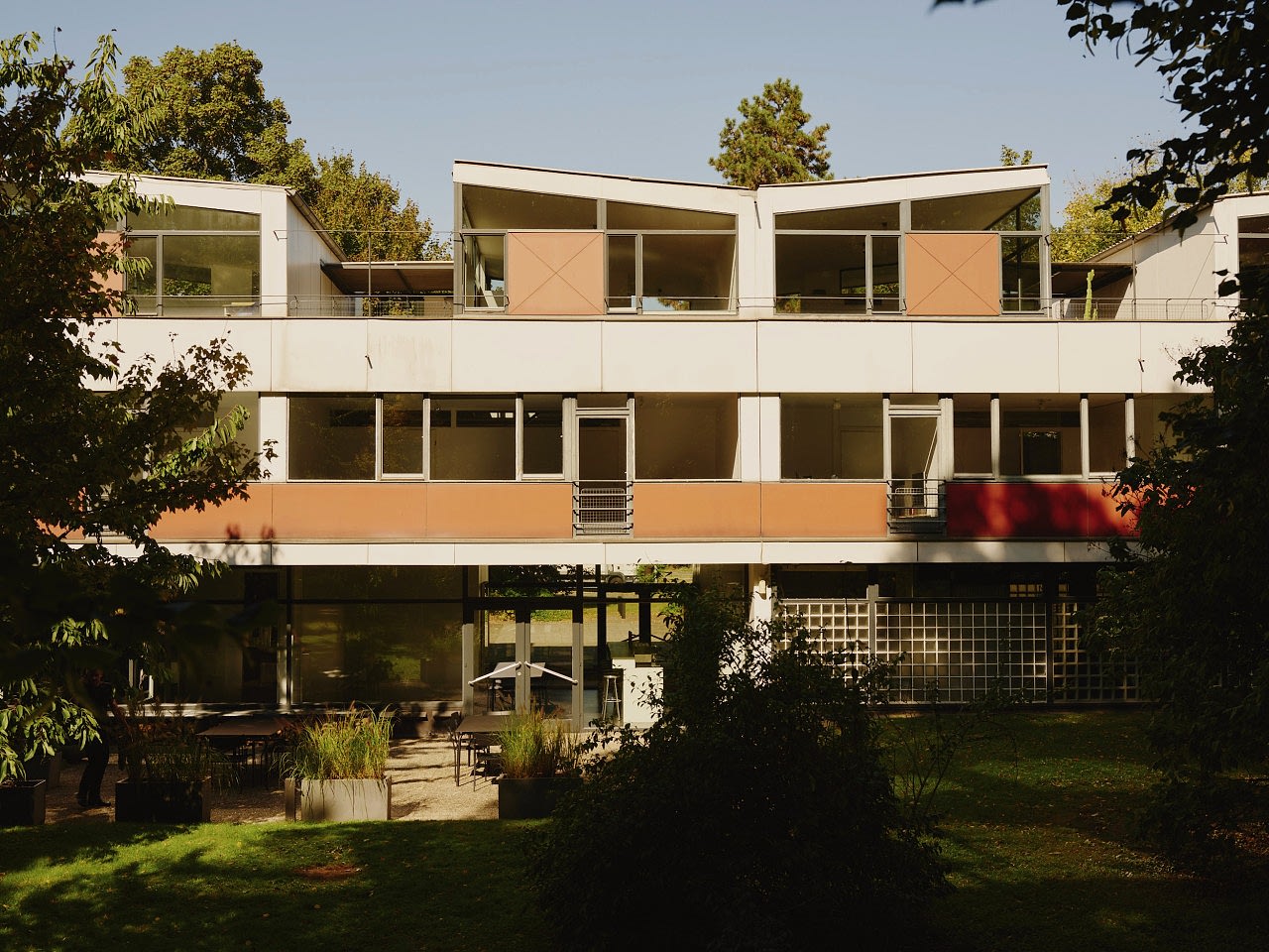 The Eternithaus is 55m long holding 7 maisonette apartments of 96sq m each and it is somewhat hidden from sight by trees and shrubbery.