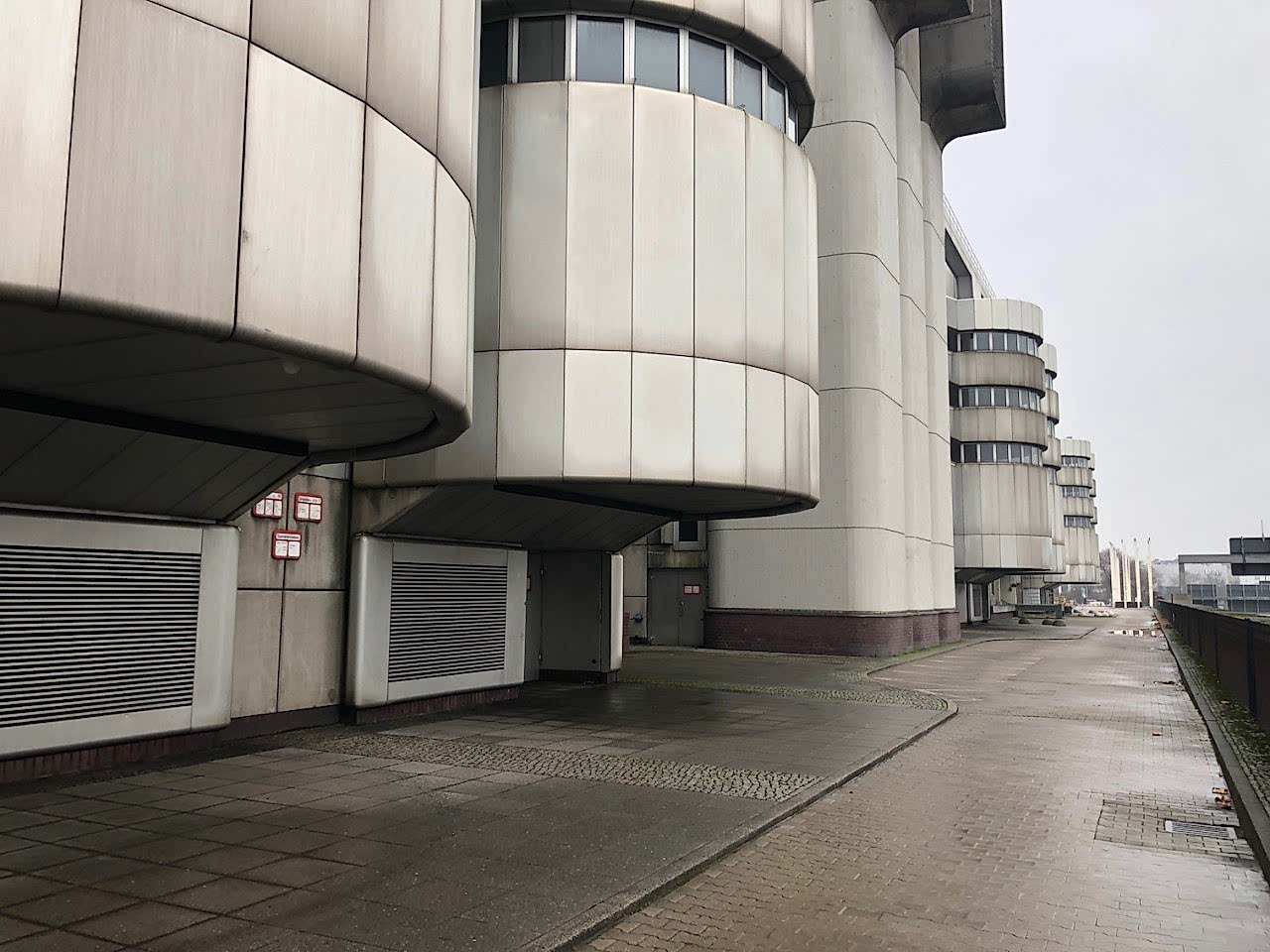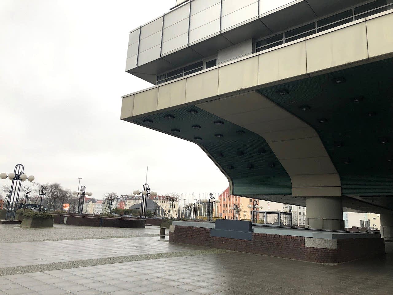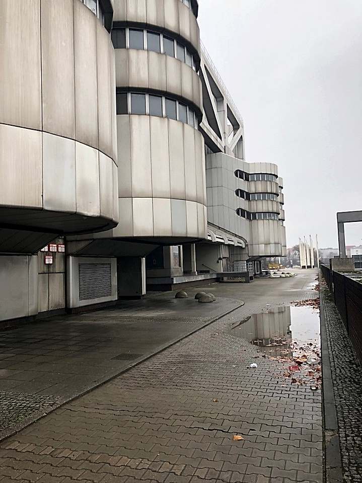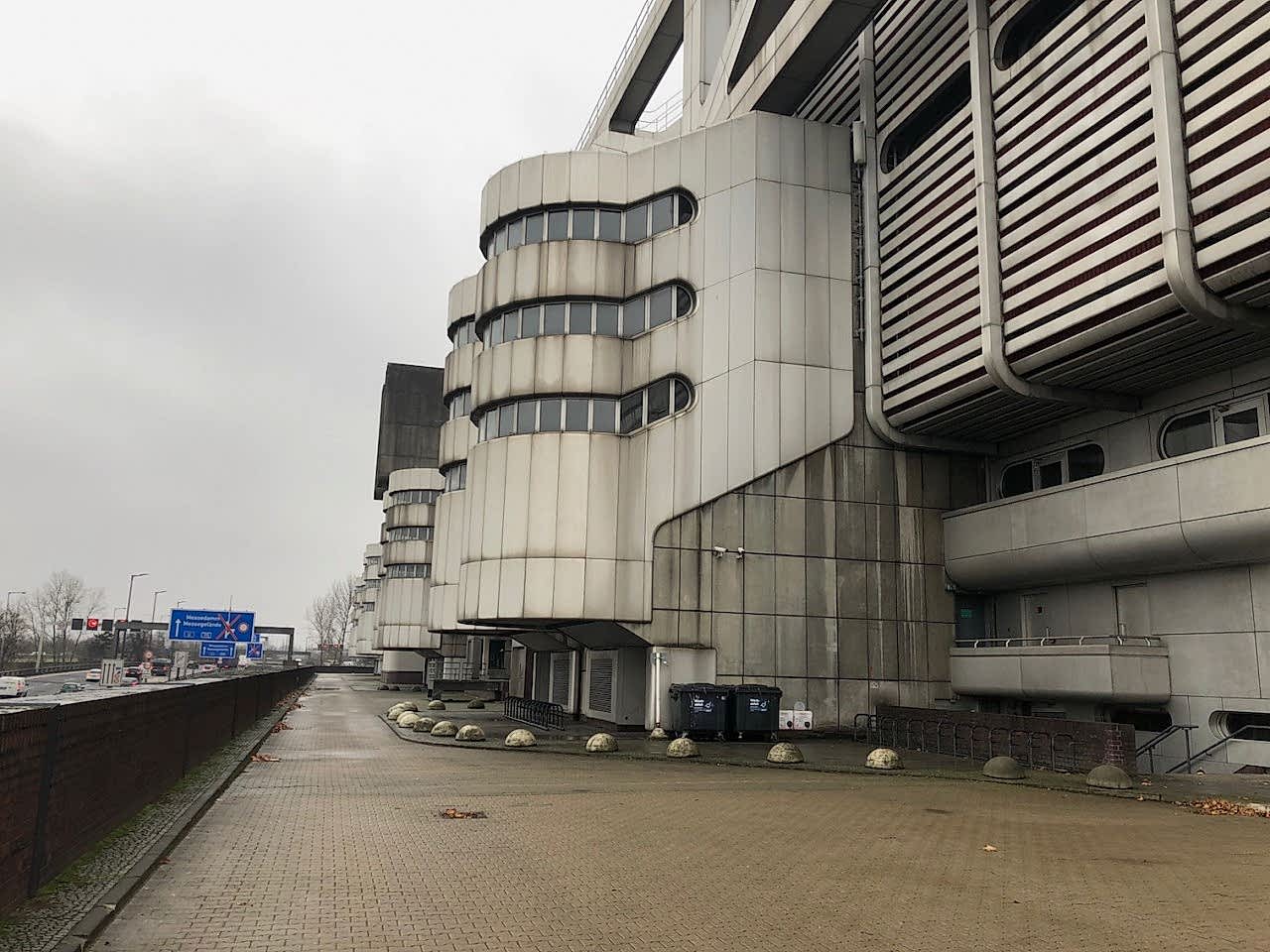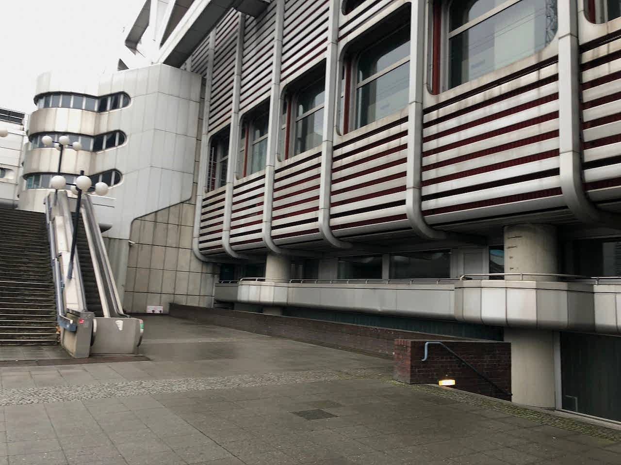 A colossal icon of retro-futurism, the ICC Berlin exterior feels like a spacecraft docked in West Berlin since 1979 โ daring, cinematic, and endlessly photogenic. With its brushed aluminium shell, layered decks, exposed piping, and skeletal walkways, this Brutalist monolith is both monumental and surreal, making it a dream location for sci-fi shoots, fashion editorials, or avant-garde campaigns.