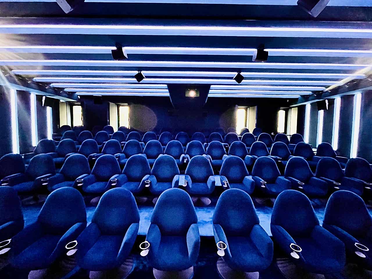 Equipped with cutting-edge technology including 4K projection, 3D capability, Dolby Atmos sound, live streaming options, and a customizable lighting concept, this cinema space blends technical excellence with aesthetic sophistication. Optional daylight incidence adds flexibility for daytime events.